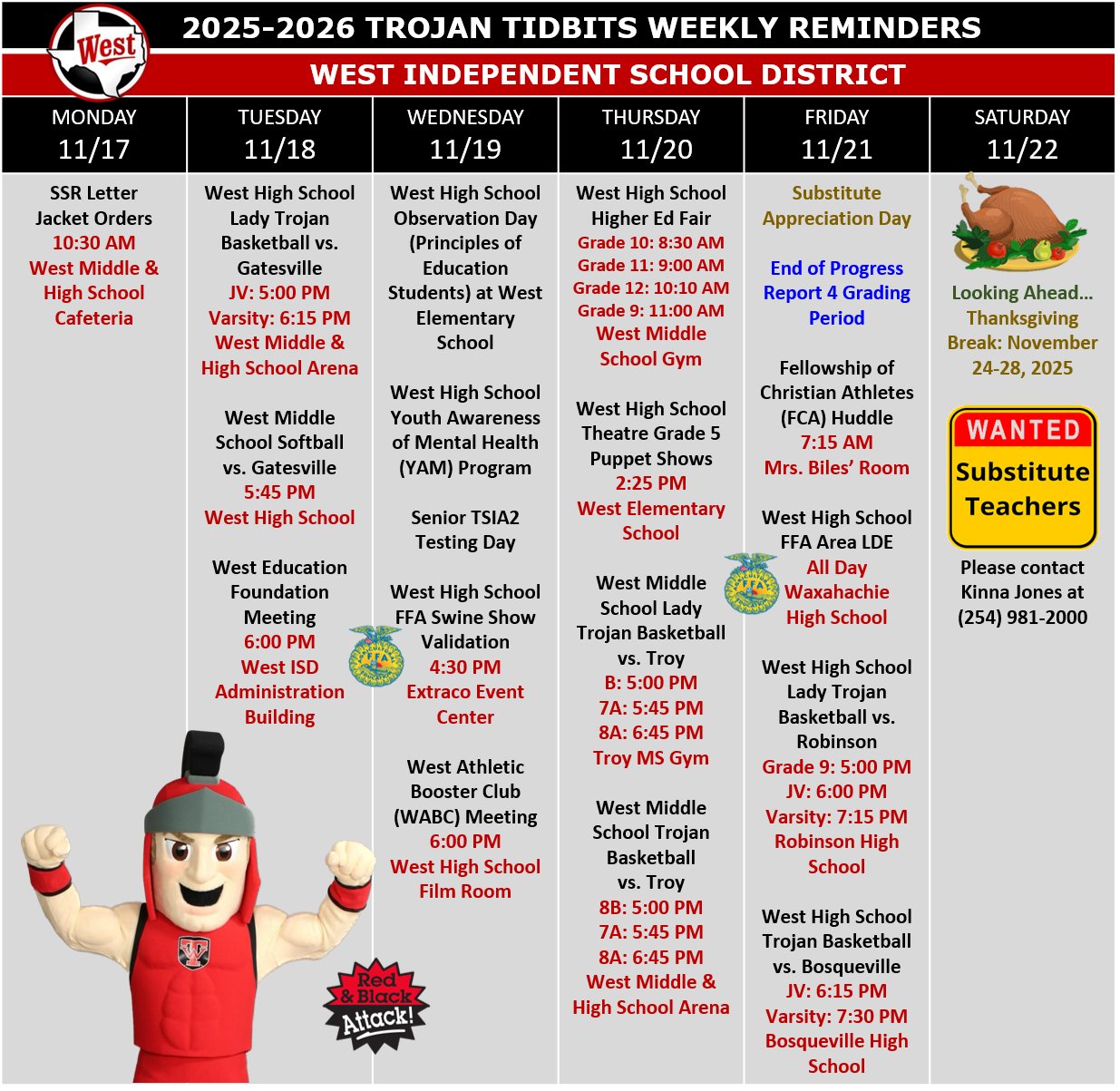 - Thank a Trojan or Lady Trojan Staff Spotlight: This program is a fun, new way to honor a West ISD staff member. The district's hope is that students, parents, community members, and/or co-workers will send in nominations for this new Staff Spotlight honor. Here's the link to nominate someone: https://docs.google.com/forms/d/e/1FAIpQLSf2gi9yqBqMZAn0CeGjpgrxDgQkQf2BURD2tPAywSbU-3R0bQ/viewform?usp=publish-editor. The nominated staff members will be honored via a social media and website post along with a special treat.